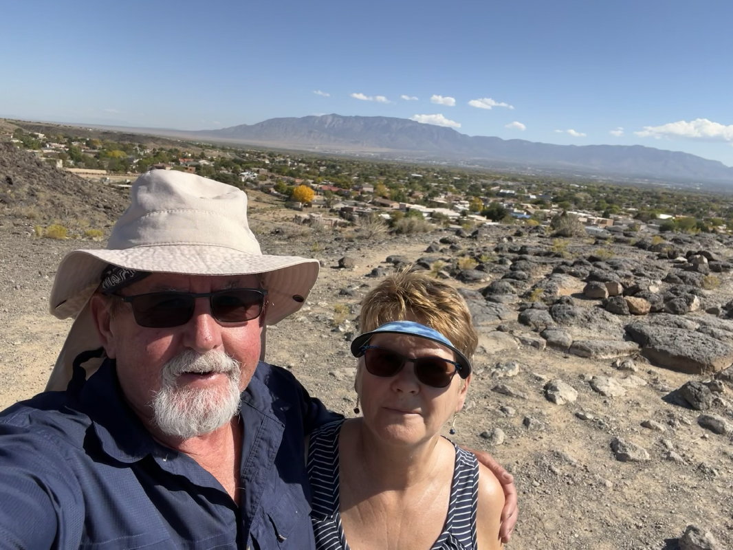 We spent the day at Petroglyph National Monument - watched a video about the area and how it was formed 200,000 years ago by volcanic eruptions which created a 17 mile long escarpment that partially eroded, leaving an area covered in basalt boulders. Later the petroglyphs were chipped into the basalt boulders by early Spaniards and then by American Indians 2000 to 3000 years ago and 400 to 700 years ago. The Pueblo People believe the area to have spiritual significance and there are over 24,000 images there. We did some hiking in the Boca Negra Canyon and the Rinconada Canyon.